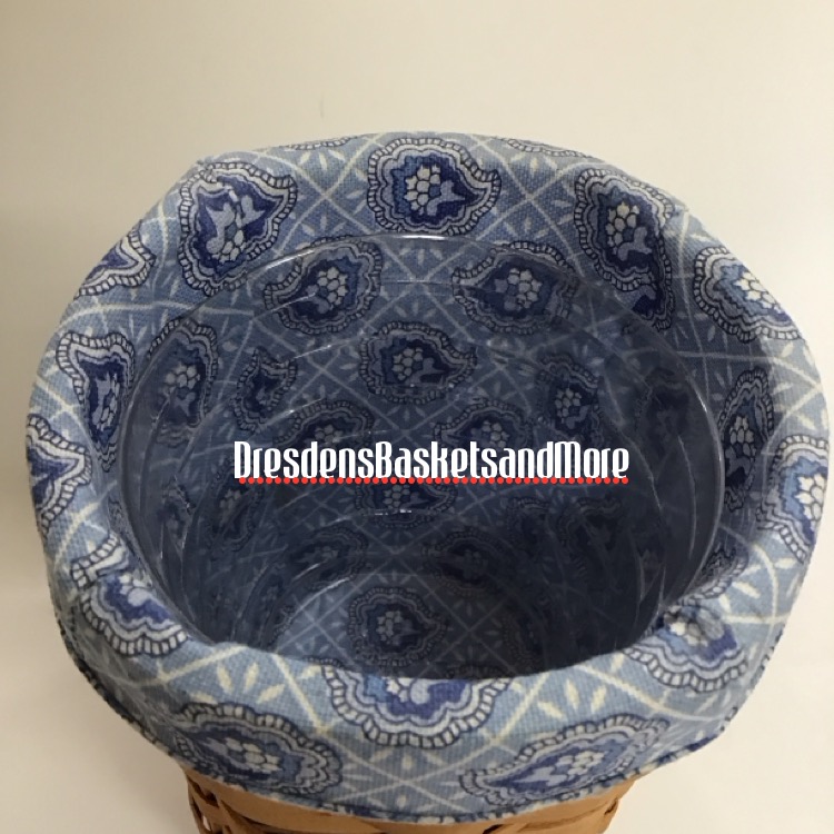 Classic. No Color Weave or Trim. No Handles. Reinforced Bottom. 3/8″ Weaving. Includes basket, Provincial Paisley liner and protector. *Liner is faded.