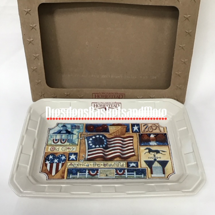 Ivory with patriotic theme and Longaberger Homestead embossment.