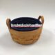 Warm Brown. 3/8′ weave. Shoestring inverted bottom. 2 leather ears. Includes basket, Membership Stripe liner and protector.