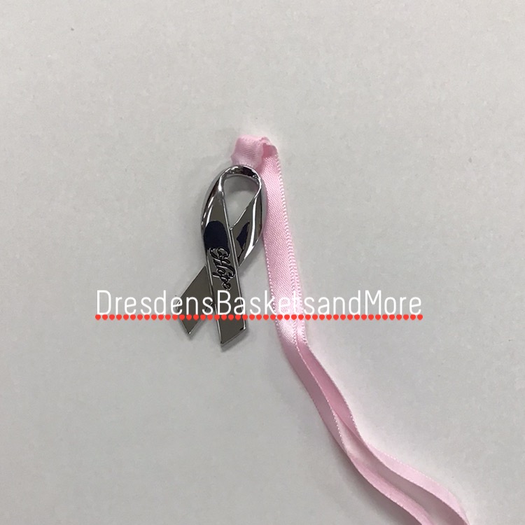 Shiny Metal Finish. Ribbon Shape. HOPE inscribed. Pink Satin Ribbon.