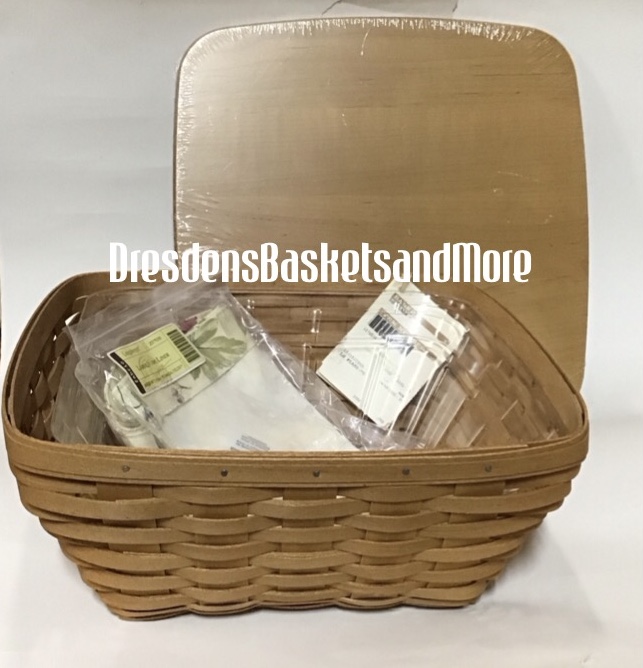 Includes basket, protector, Woodcrafts lid and Botanical Fields liner. Lid is new in plastic.