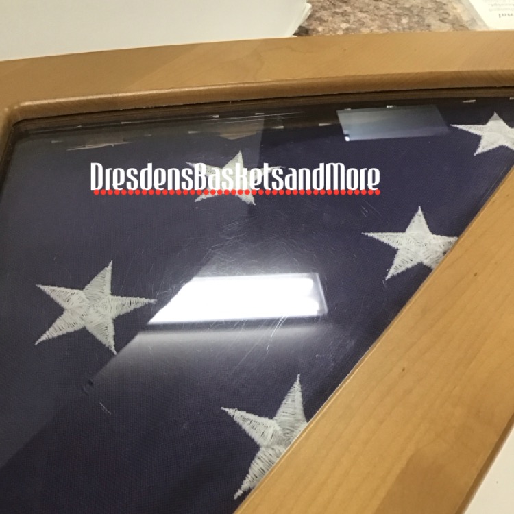 Warm Brown. Bright Cornflower accent weave with Whitewashed and Bold Red twisted weave accents. No Tag. No Handles. Board bottom. Set includes basket, protector, flag and lid. *Lid has some scratches on plexiglass. See photos.