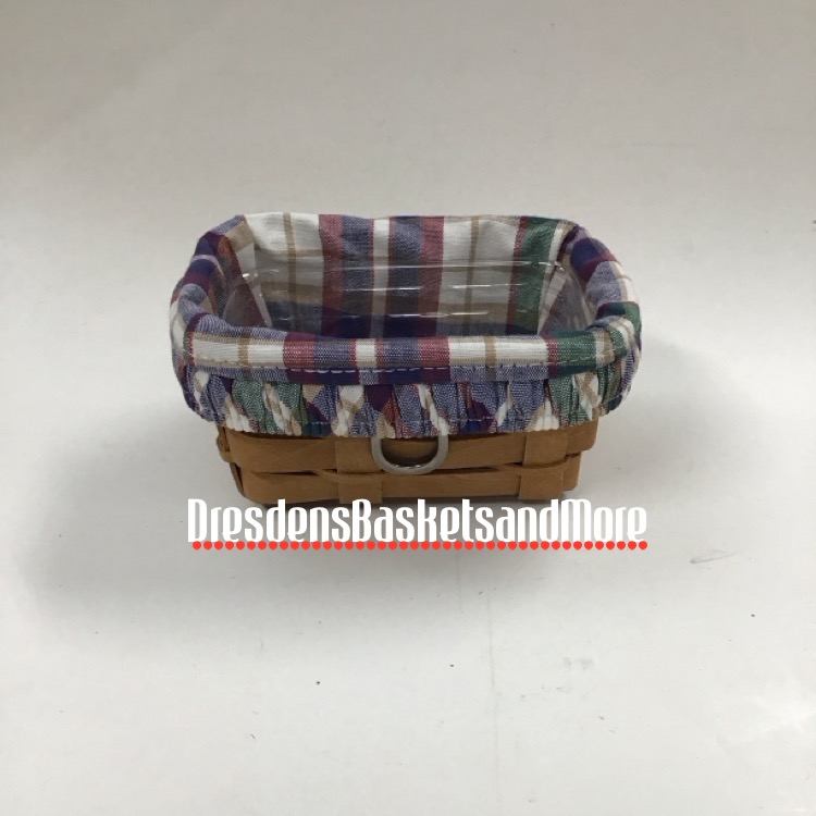 Warm Brown. No Tag. No Handles. Shoestring accent weave. Decorative nickel buckle on front. Includes basket, Woven Traditions Plaid liner and protector.