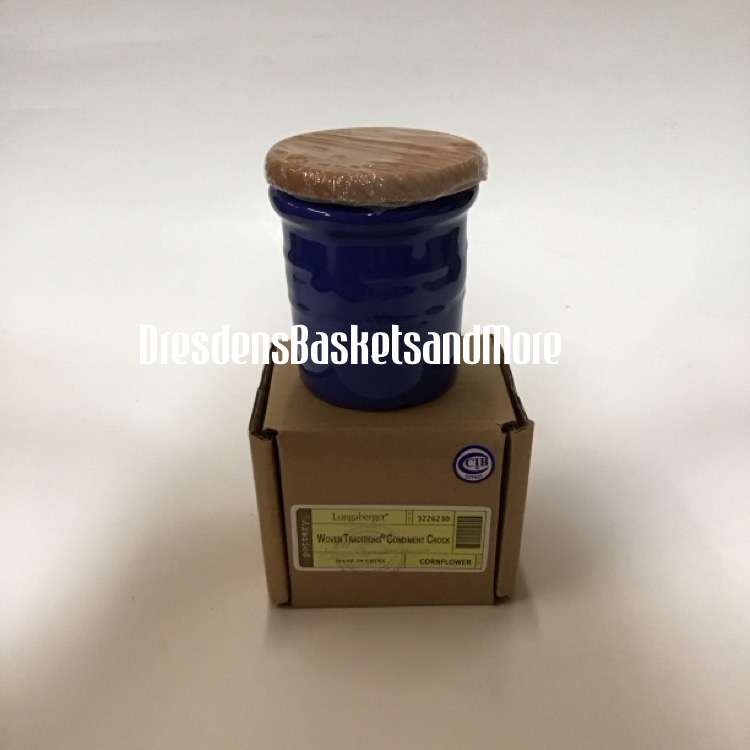 Longaberger Cornflower Condiment Crock w/ Woodcrafts Lid NIB