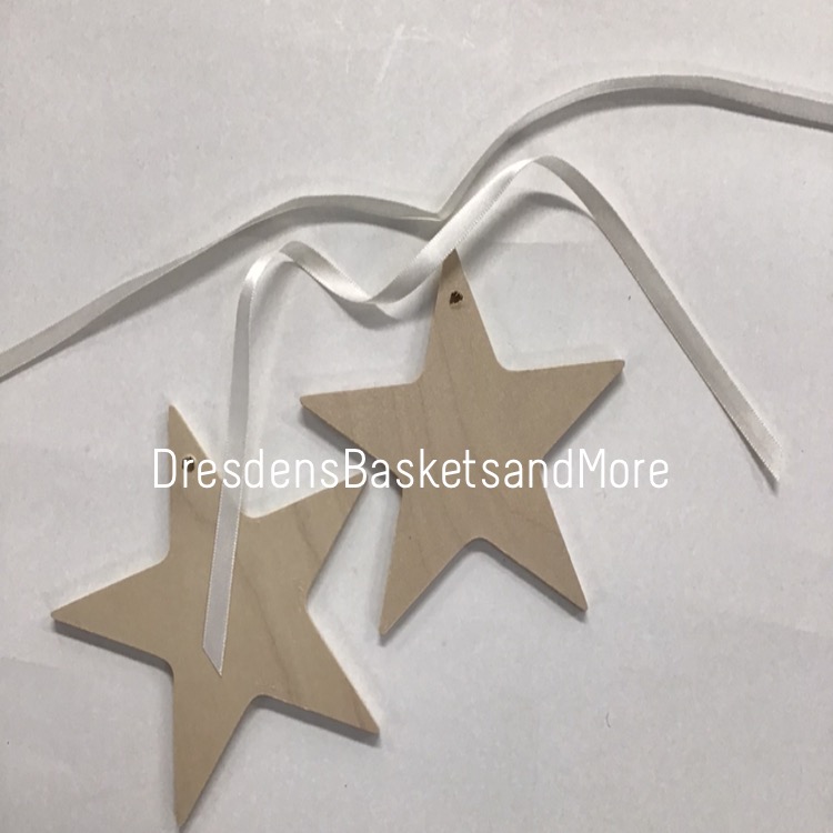 White star-shaped tie-on. Ivory ribbon. Set of 2.