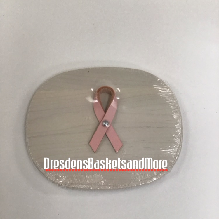 Whitewashed with pink leather ribbon. New in plastic.