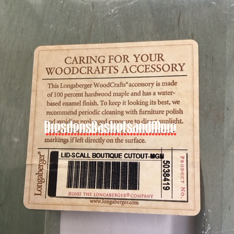 Longaberger Woodcrafts Cutout Scalloped Boutique Medium Green Lid NIP