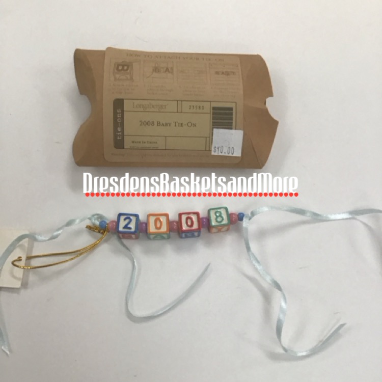Four moveable, miniature baby blocks that spell BABY on one side and the year on the opposite. Sky Blue Ribbon. Box. Size: 3.5L 0.5W 0.5H