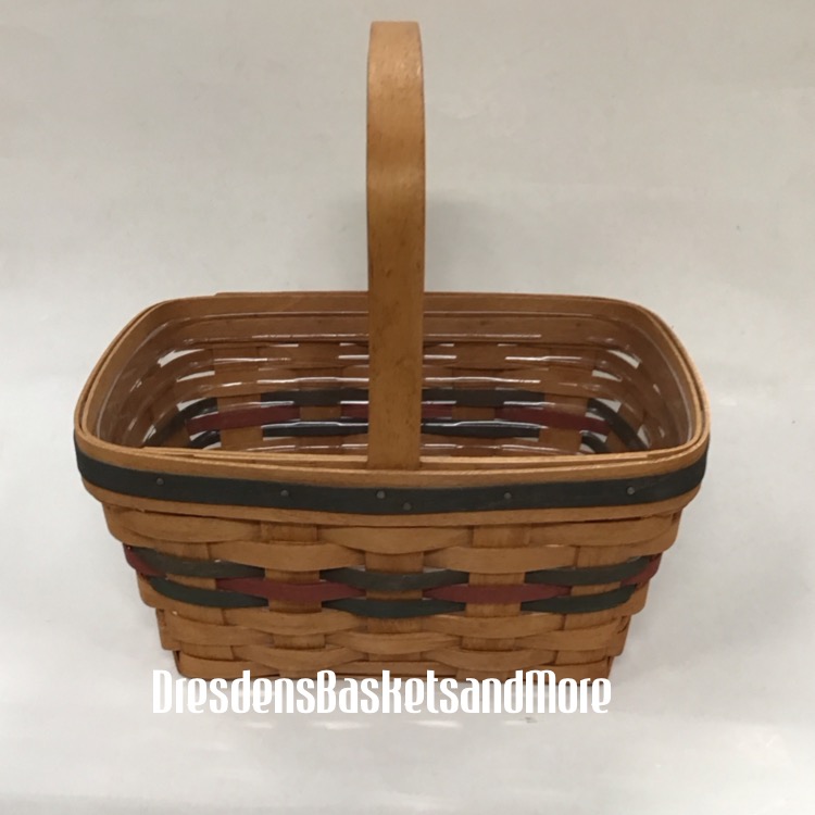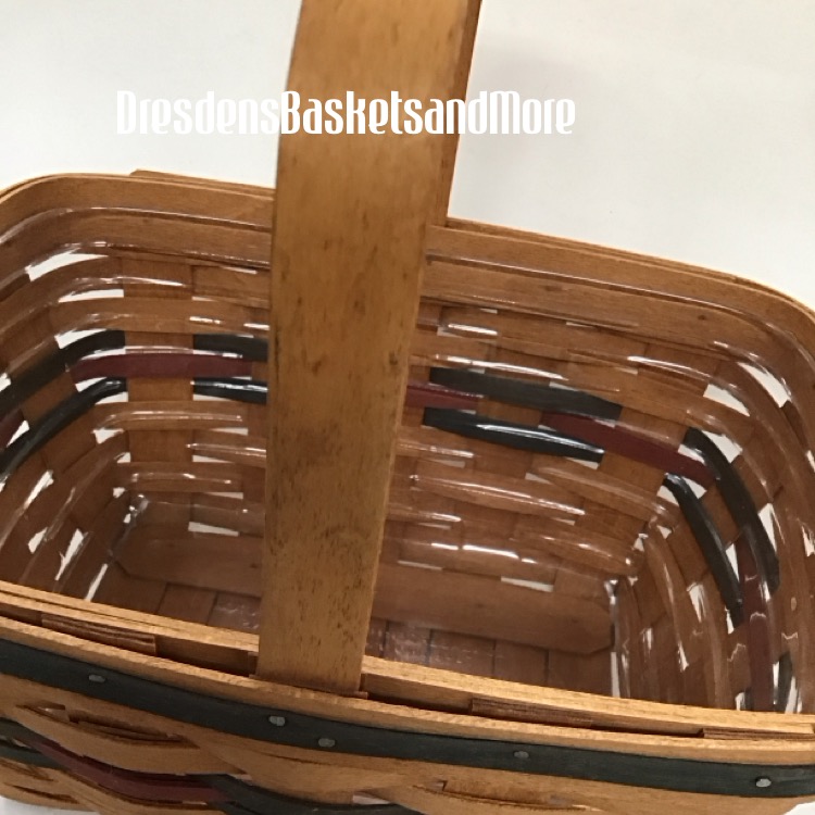 1 stationary handle. Blue and red Accent Weaves. Includes protector. *Basket has some scuffs on the handle but overall good shape for its age.