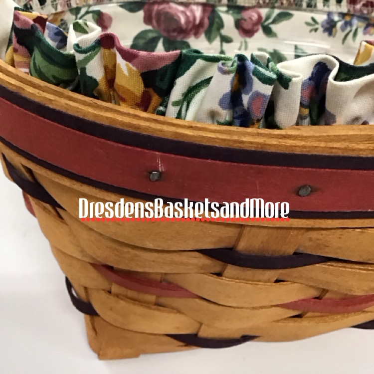 Stained with rose pink and purple accent weaving. 1 stationary handle. Includes basket, Garden Splendor and protector. *See photos for mark.