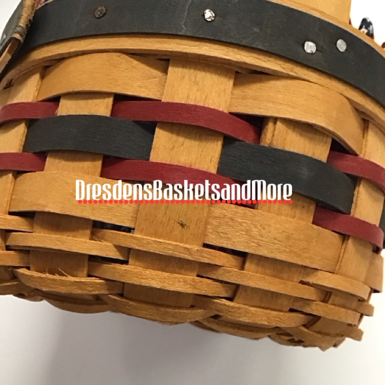 Red and blue weave with blue trim. 1stationary handle. Commemorative pewter tag.