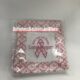 Natural with Pink & yellow and purple & green shoestring weave with purple and green trim. 1 stationary handle. 3/8″ weave. Basket is dated 1997.