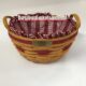 Red and green weave and trim. No tag. 1 swinging handle. Metal hanger on top back. 3/8″ weave. Includes basket, Imperial Stripe liner and protector.
