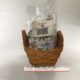 Sage, Brown and Burgundy Color Weave. Sage and Brown Trim. Stitched Leather Handles. Reinforced Bottom. 3/8″Weaving.
