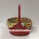 Blue and green double trim. 1 stationary handle. Open-weave bottom. Collectors Club Century Celebration logo burned into the bottom. 1/4″ weaving.