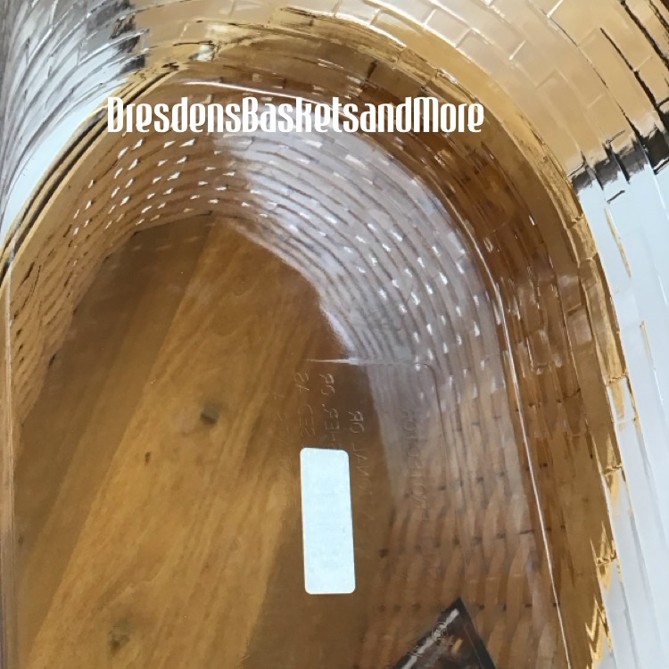 Classic. 3/8″ weave. Triple upsplints. Poplar wood board bottom. 1″ top bands & 3/4″ bottom bands. Block wood handles.