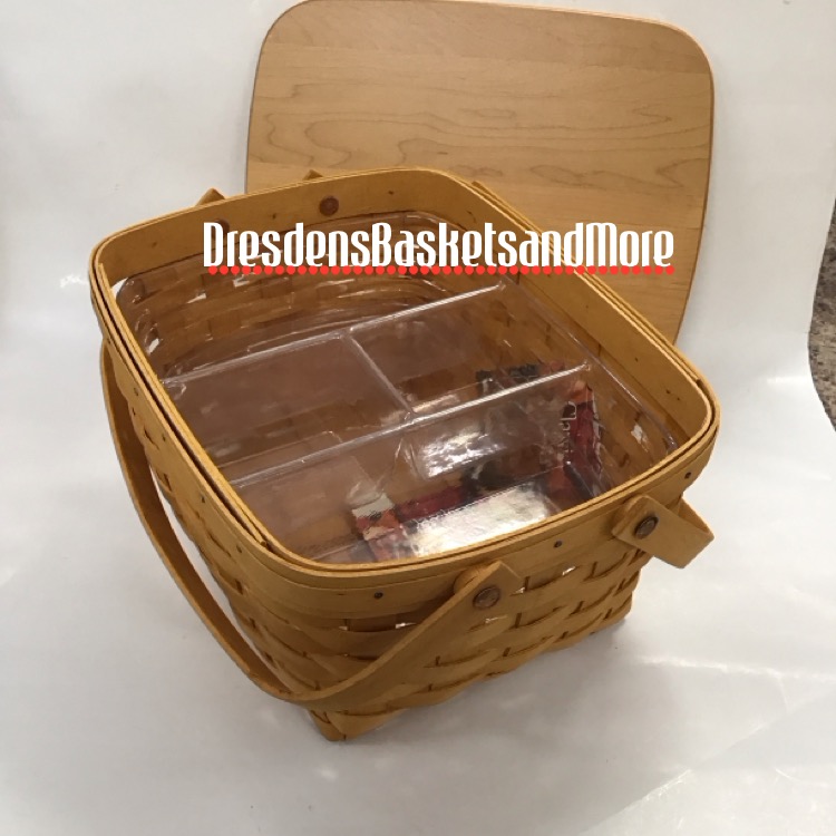 Classic. No color weave or trim. 2 swinging handles. Reinforced bottom. Includes basket, divided protectors and Woodcrafts lid.