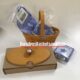 Warm Brown. Blue and Green accent weave and trim. No tag. 1 swinging handle. 1/4″ weaving. Reinforced bottom. Burned in logo.
