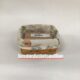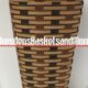 Warm brown. Dark brown top and center reinforced trim strips. 2 swinging handles. Open weave bottom. 5/8″ weave. Wood riser.
