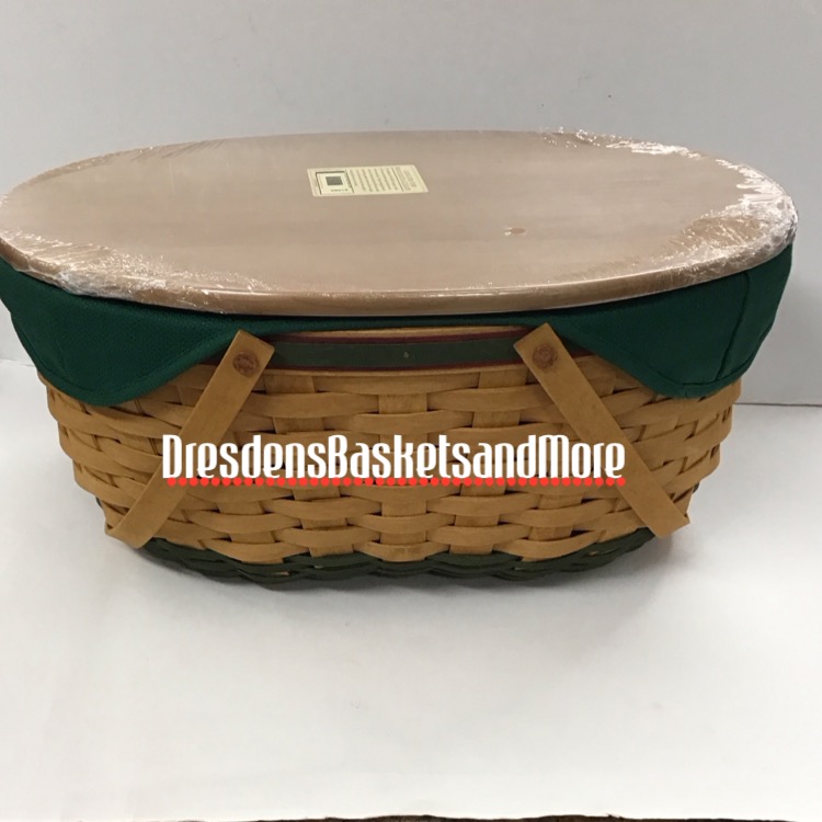 Longaberger 2004 Holiday Hostess Greetings Green Basket Combo w/ Woodcrafts Lid