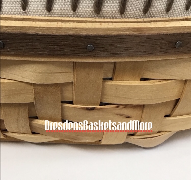 Heartwood. Walnut Trim Strip & Block handles. Solid Wood Bottom. 1/2″ Square Step Weave. Please see photo for knot in weave splint.