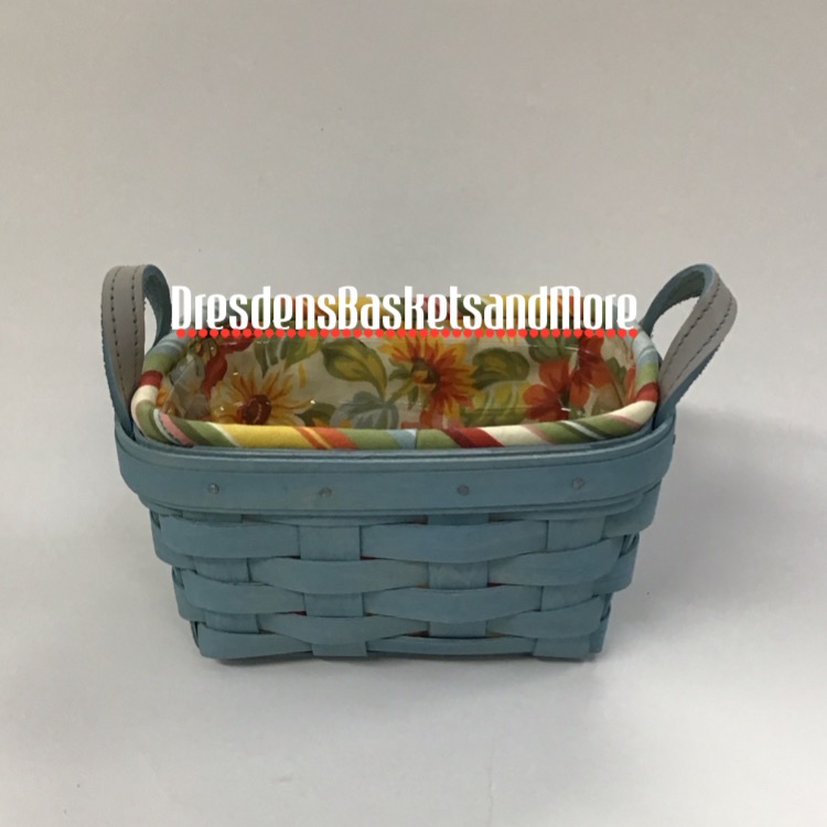 Aqua Longaberger Tea Basket with Sunflower Stripe liner and protector.