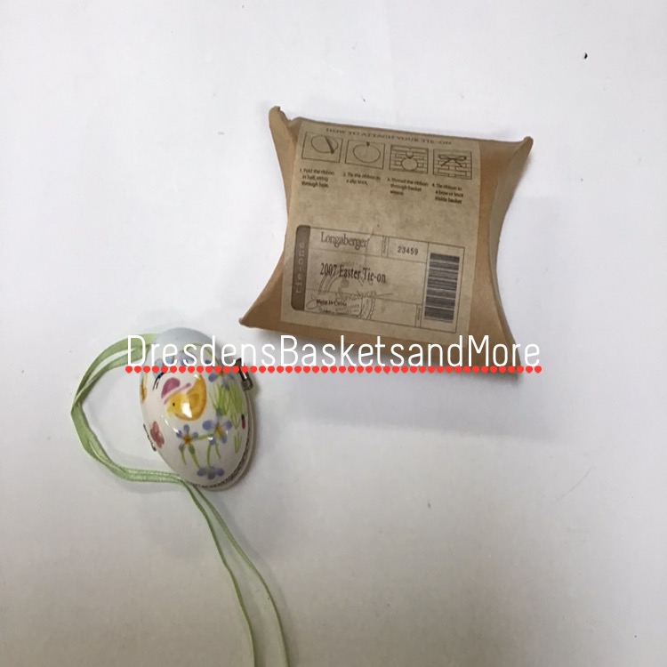 Hand-painted ceramic with Yellow chick with butterfly image. Oval Limoges-style box. Green Ribbon. Box.