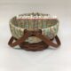 Warm Brown. Round top, square bottom. Braided trim made of paper twine. 1 stationary handle.