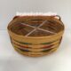 Whitewashed with pastel green, pastel blue and peach triple trim strip and accent weave. Stationary woven splint handle (pastel green/peach for whitewashed version or Warm Brown). Woven bottom. 2010 Easter Series burned in on bottom.