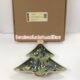 Vitrified China. White background. Holly leaves in soft shades of green. Red holly berries. Butternut trim top and bottom. Box. MADE IN USA