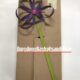 Flower created by thin splints with center button embellishment. Bright green splint stem. Rosy with green button center. New in box.