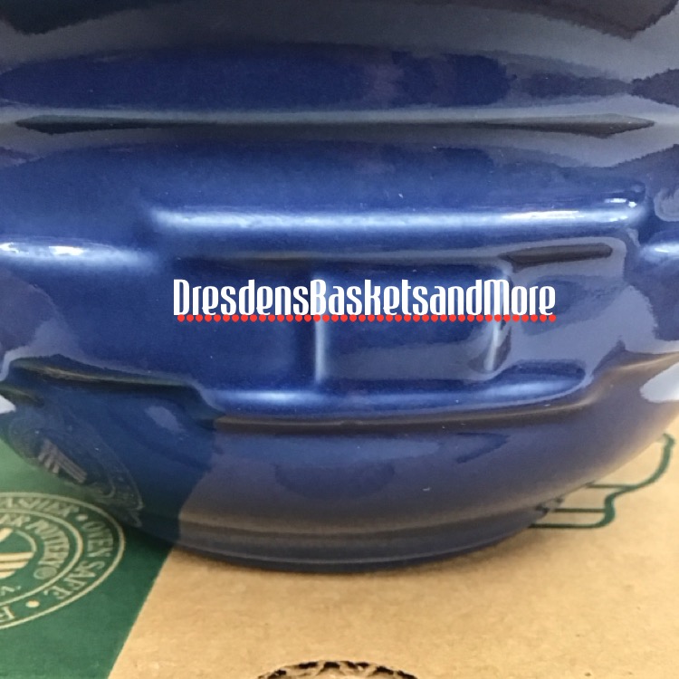 New In Box. Vitrified China. Cornflower on outside, solid white on inside. Woven Tradition pattern around outside of bowl. MADE IN USA