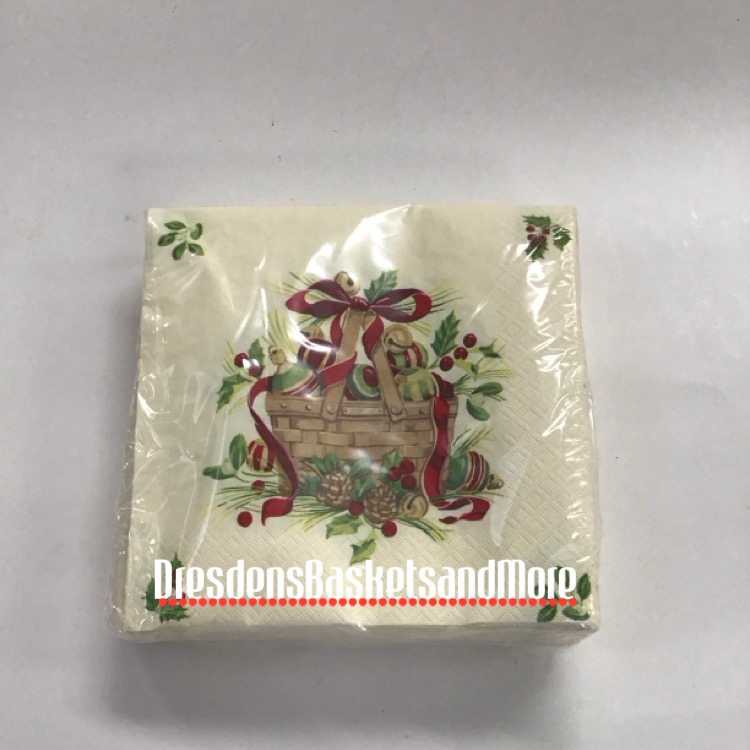 Paper napkins new in package. Basket with holiday garland accents. 36 count.