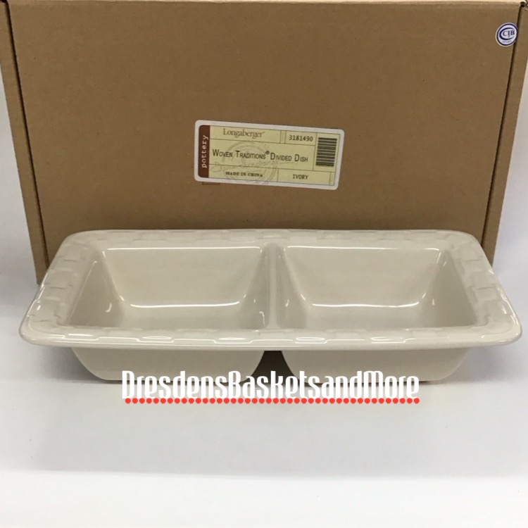 Each side of the dish will hold up to 16 oz each. It is Vitrified-safe for use in microwave, oven, dishwasher and freezer and will also fit into the Medium Market Basket, the Small and Medium Oval Gathering baskets as well as in the Medium and Large Serving baskets.