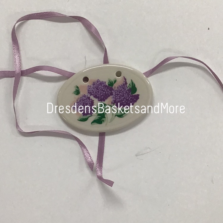 Lilac tie-on with purple ribbons