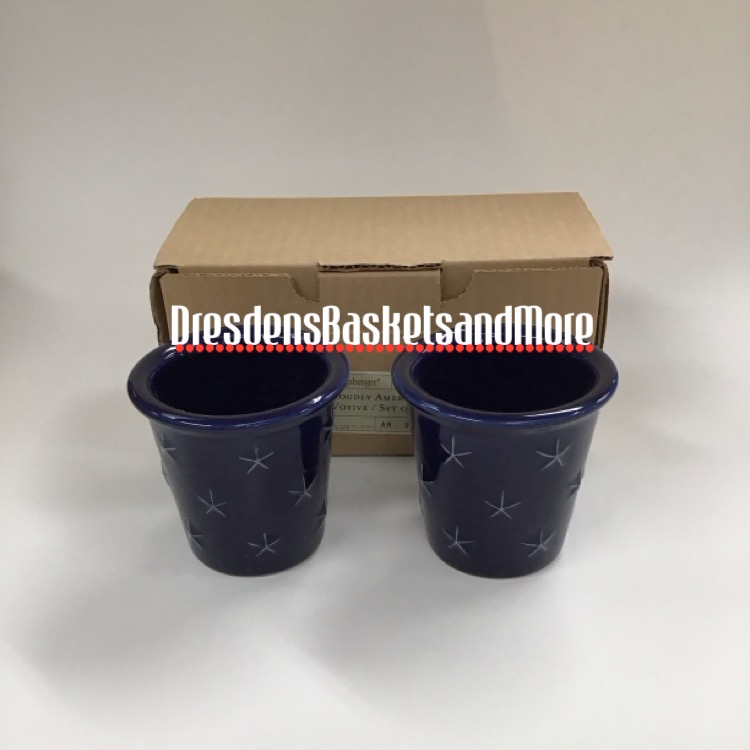 Set of 2. Vitrified. Embossed Stars. Blue. Box.